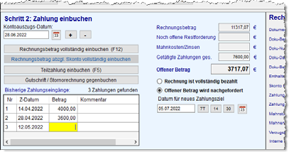 Wenn Sie dann eine Zahlung buchen, wird als Zahlungsdatum („Z-Datum“) immer dieser Wert eingesetzt. Sind Sie bei Ihrer Liste an einem neuen Datum angelangt, ändern Sie das Datum entsprechend ab.