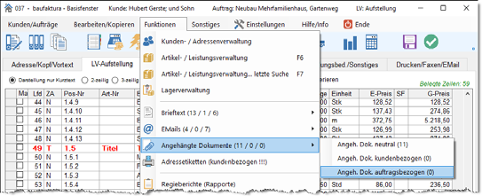 Die „Angehängte Dokumente“ ist eine kleine Dokumentenverwaltung für Dateien, die von einer anderen Software erstellt wurden - aber auf irgendeine Art mit einem Kunden oder Auftrag zusammenhängt. Es sind Dateien wie z.B. Word, Excel, PDF, GAEB-Dateien, Textdateien, HTML-Dateien, Bilder usw. Auch diese Fremddateien können neutral, kundenbezogen oder auftragsbezogen abgelegt (bzw. verlinkt) werden.