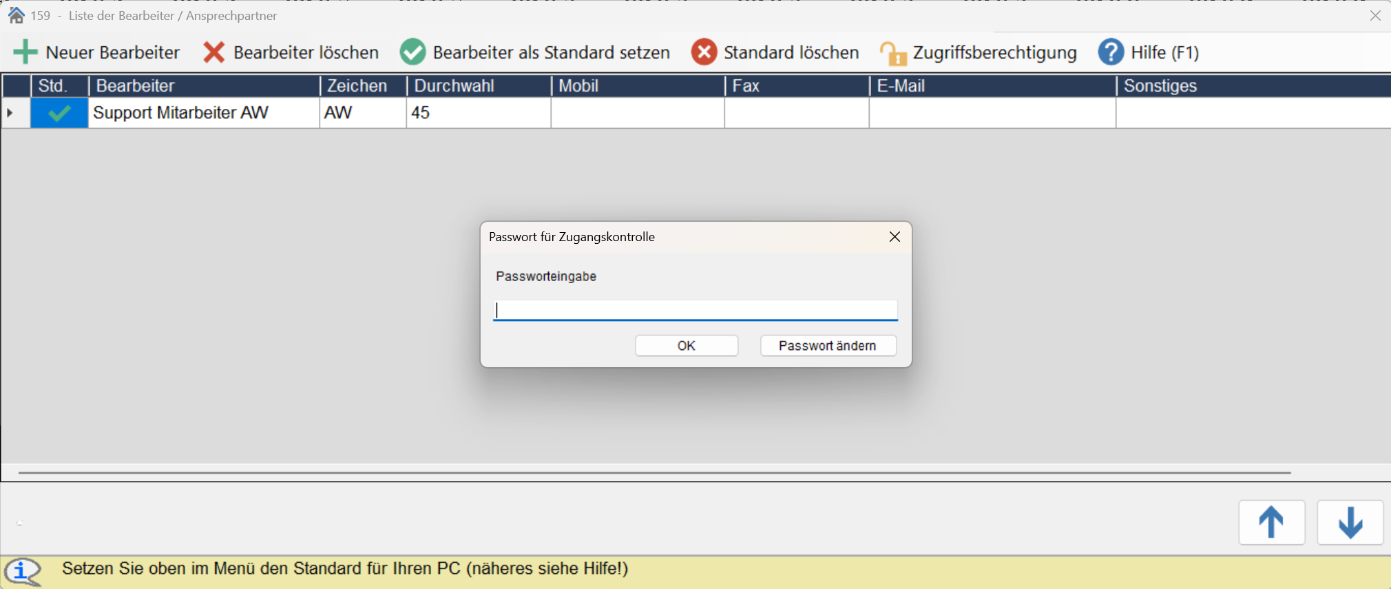 Wenn noch kein Passwort hinterlegt wurde, können Sie an dieser Stelle das Passwort definieren.